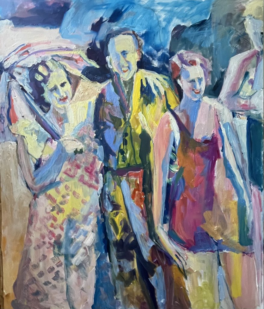 Moster Britta, R.W och okända vänner, 2024, olja 115x86x4 cm